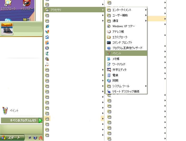 ペイントは下記SSのようにスタート>すべてのプログラム>アクセサリ>ペイント で起動します。