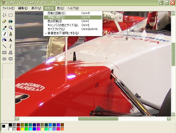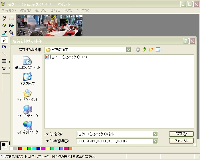 そこで今回はいまお使いのパソコン(、といても、うちのPC古いのでXPですが・・・)に最初っからインストールされている便利なペイントにて縮小してみましょう。